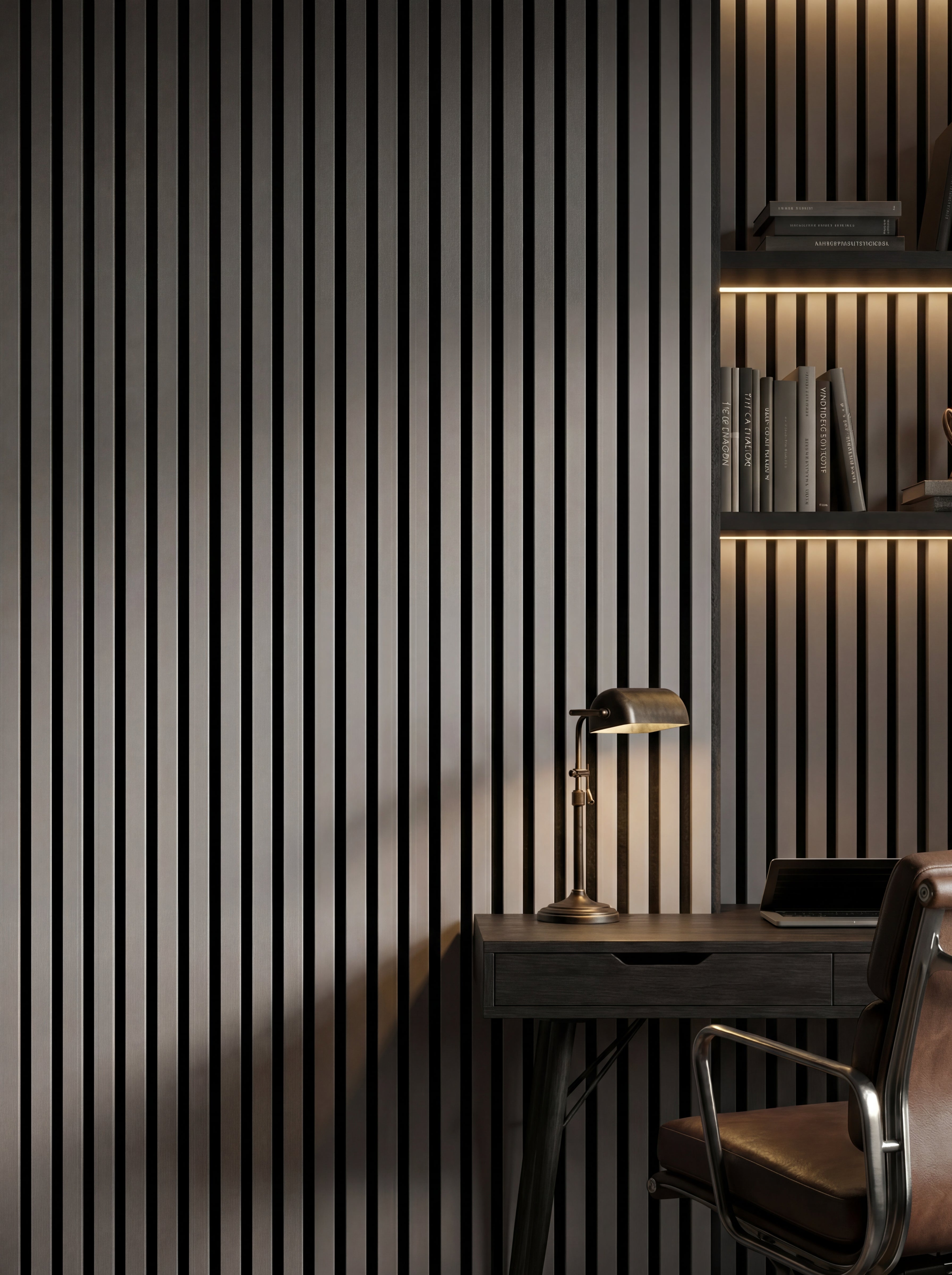 PANELUX™ Grey Soft Touch (Black Felt) Acoustic Slat Wall Panel (9' Height)
