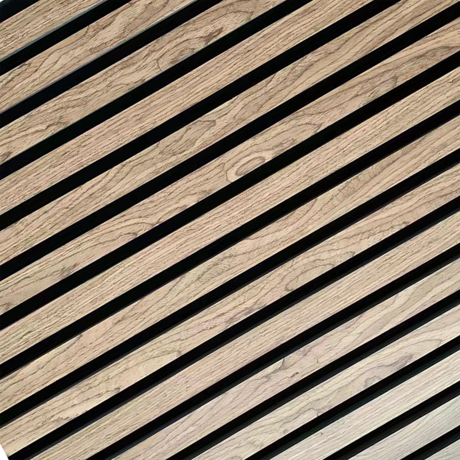 - MDF Wood Slats with White Oak Veneer Finish – Combines strength and visual lightness, showcasing a soft, natural white oak tone with a refined, luxurious appearance.